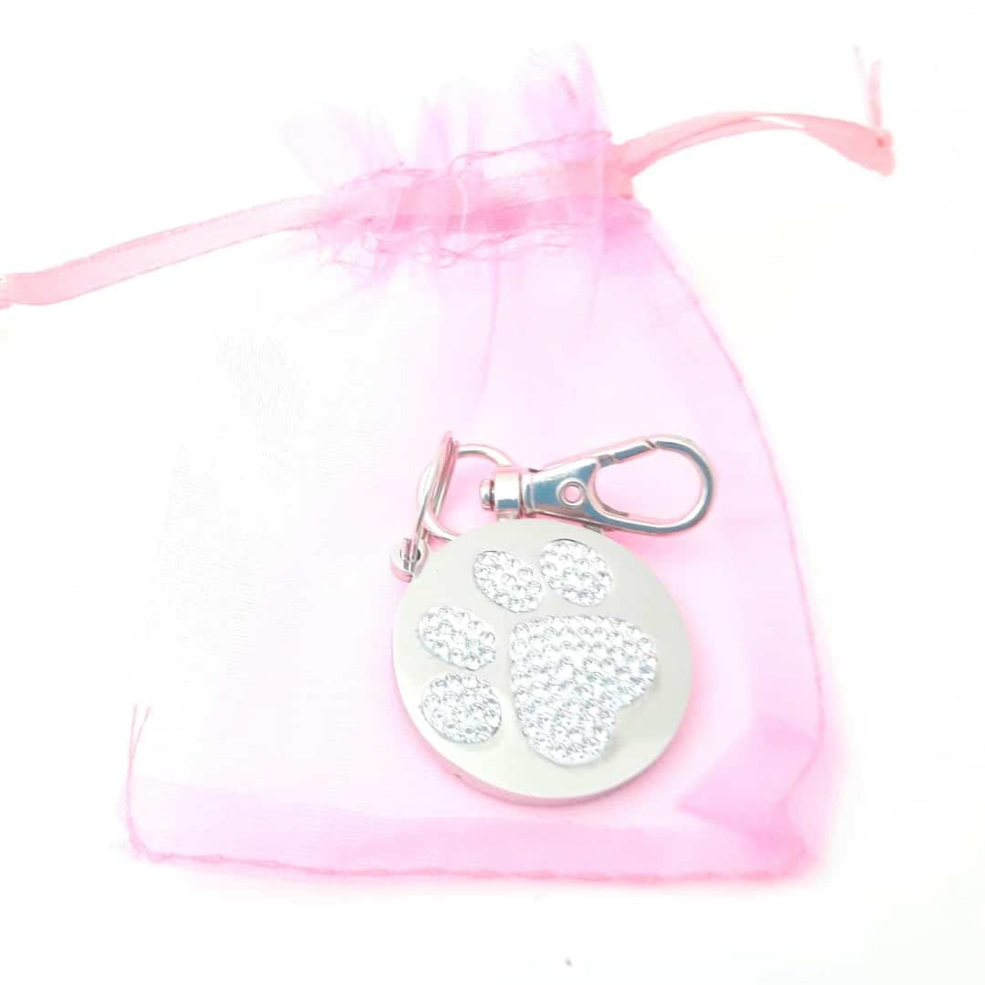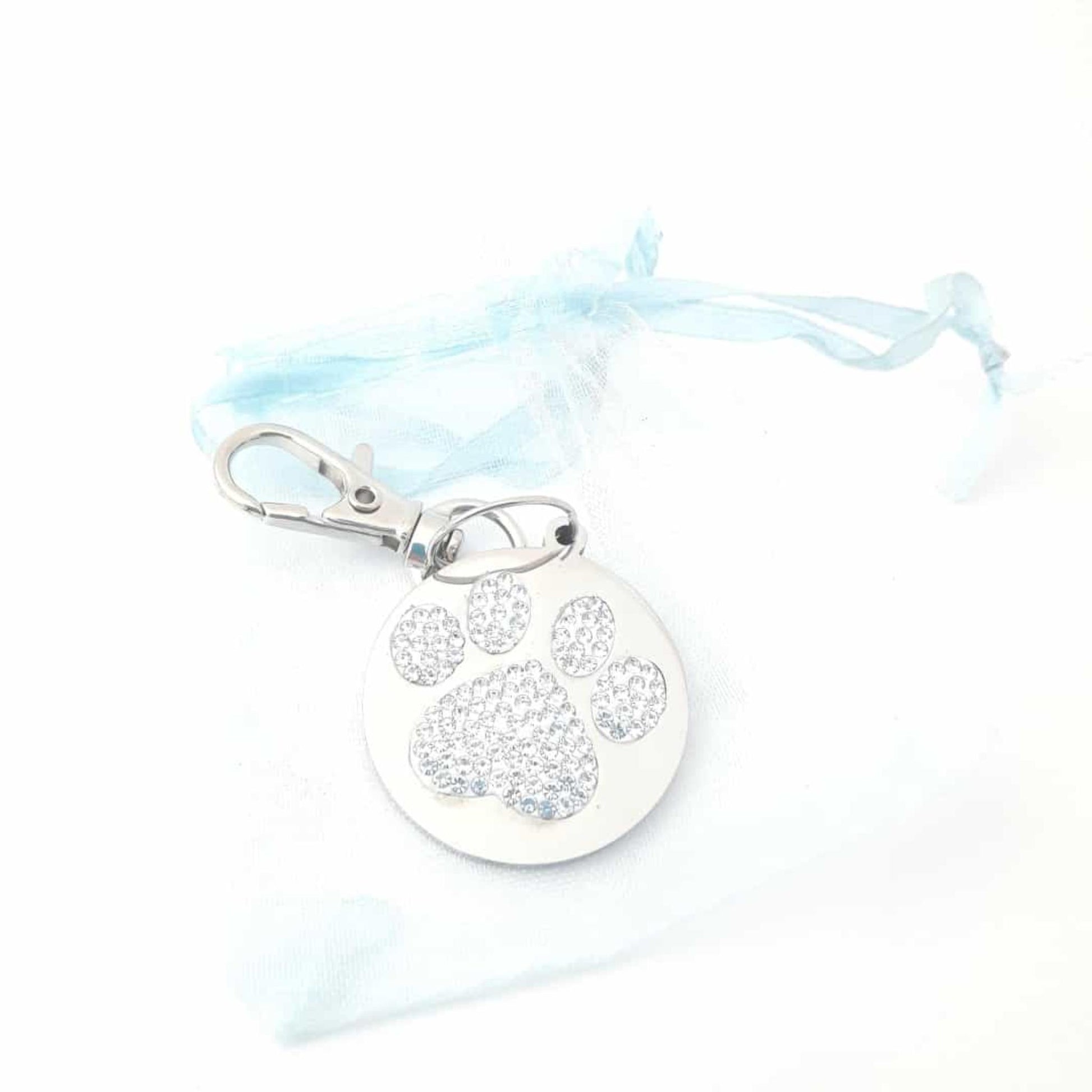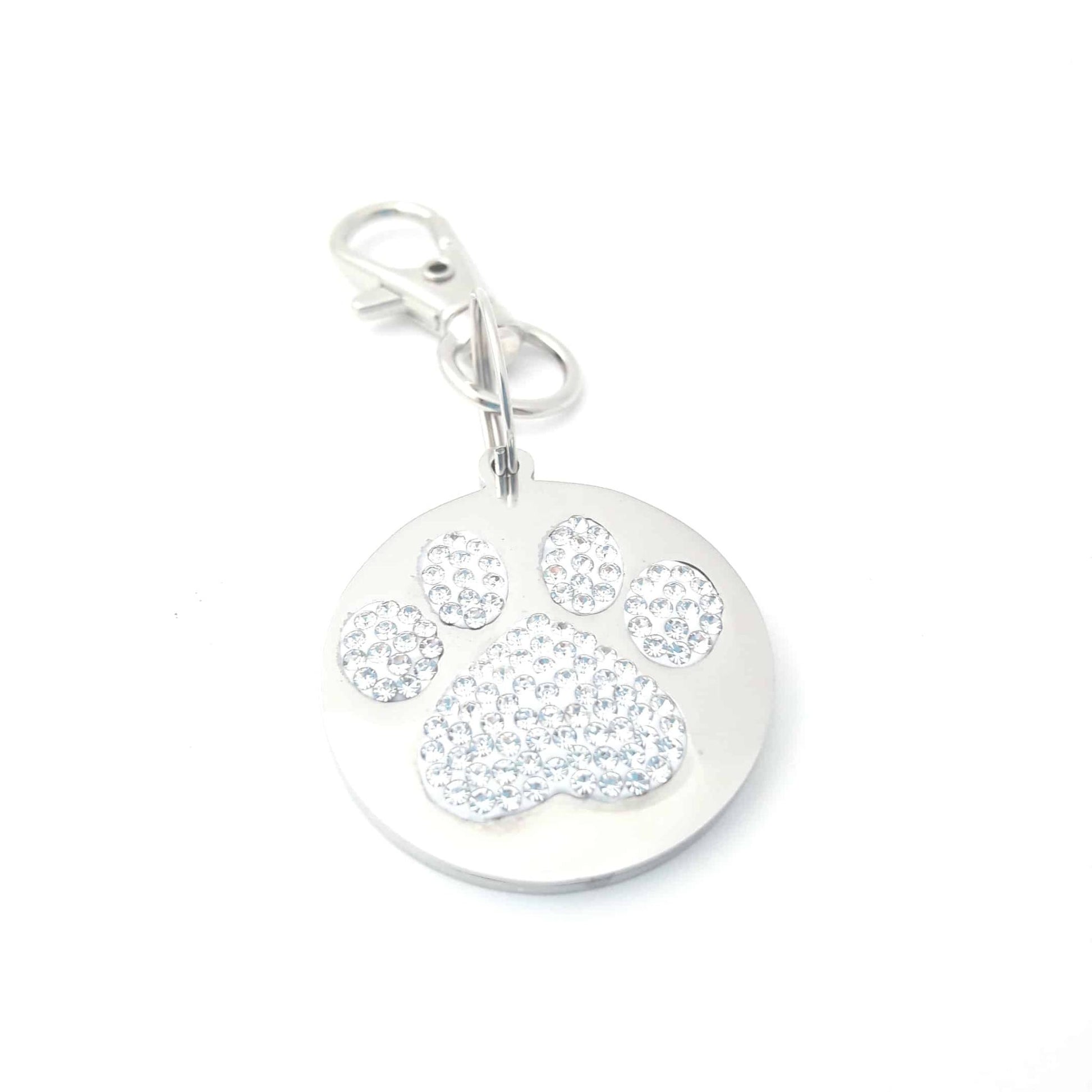 Lemmikin nimi ja puhelinnumero merkitään laatan toiselle puolelle. Toisella puolella laattaa on kimaltava tassukuvio. Nimilaatta kiinnitetään koiran tai kissan kaulapantaan. Nimilaatan avulla on lemmikin omistajan tavoittaa helposti.