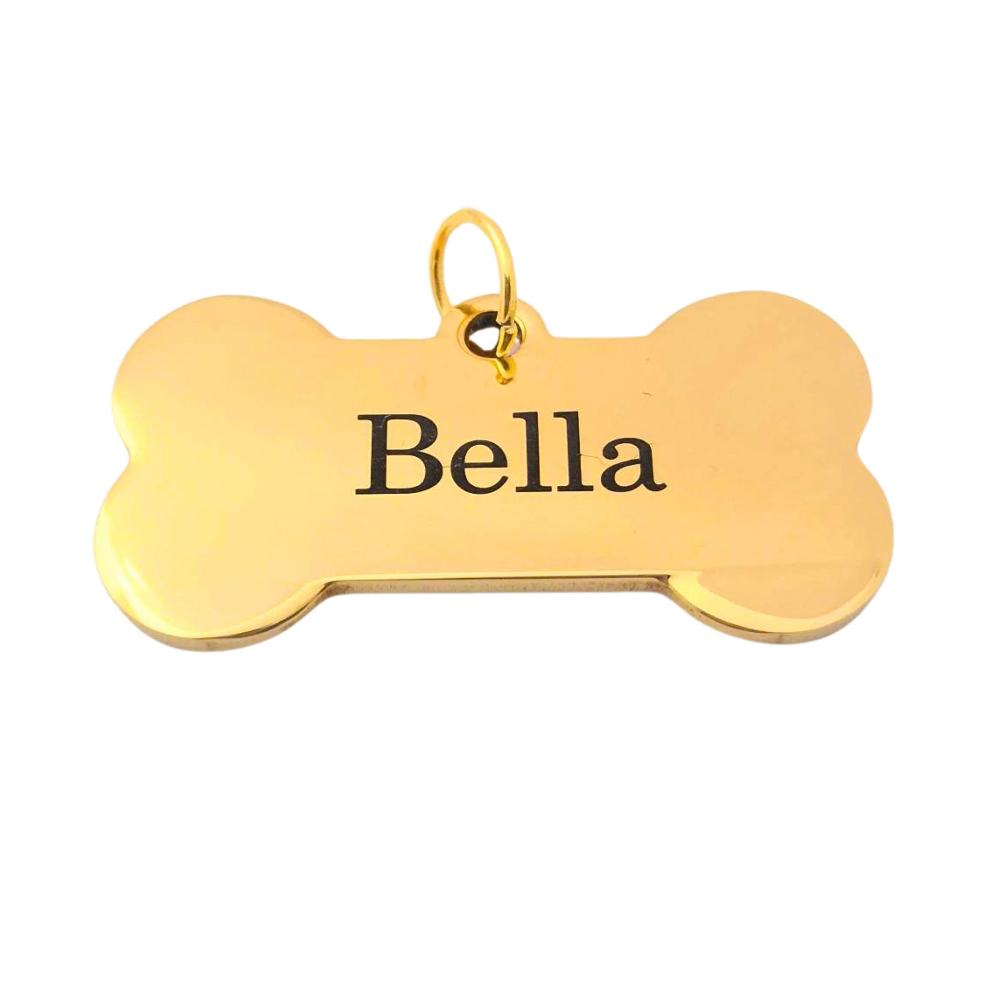 Koiralle tyylikäs kullanvärinen nimilaatta ruostumattomasta teräksestä.