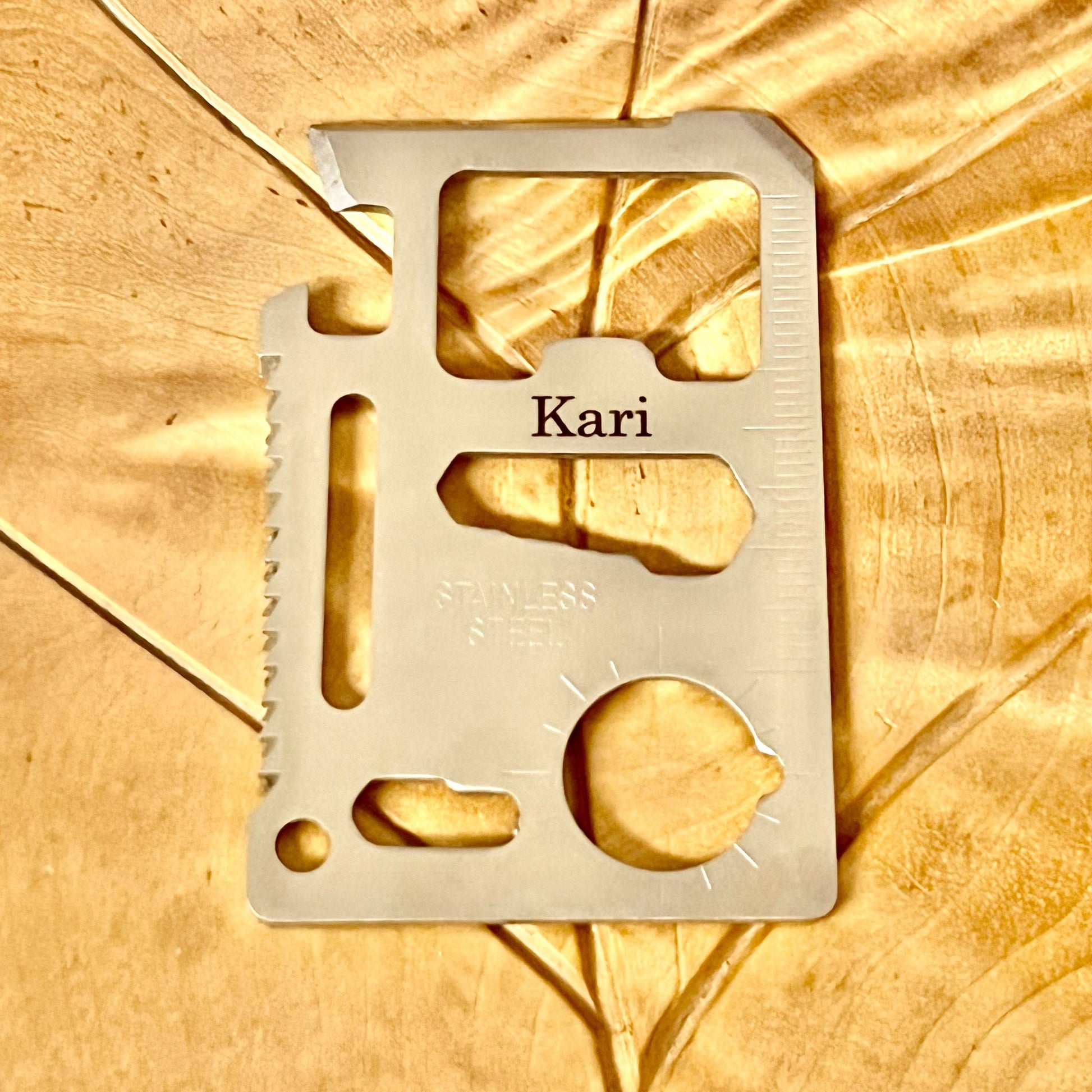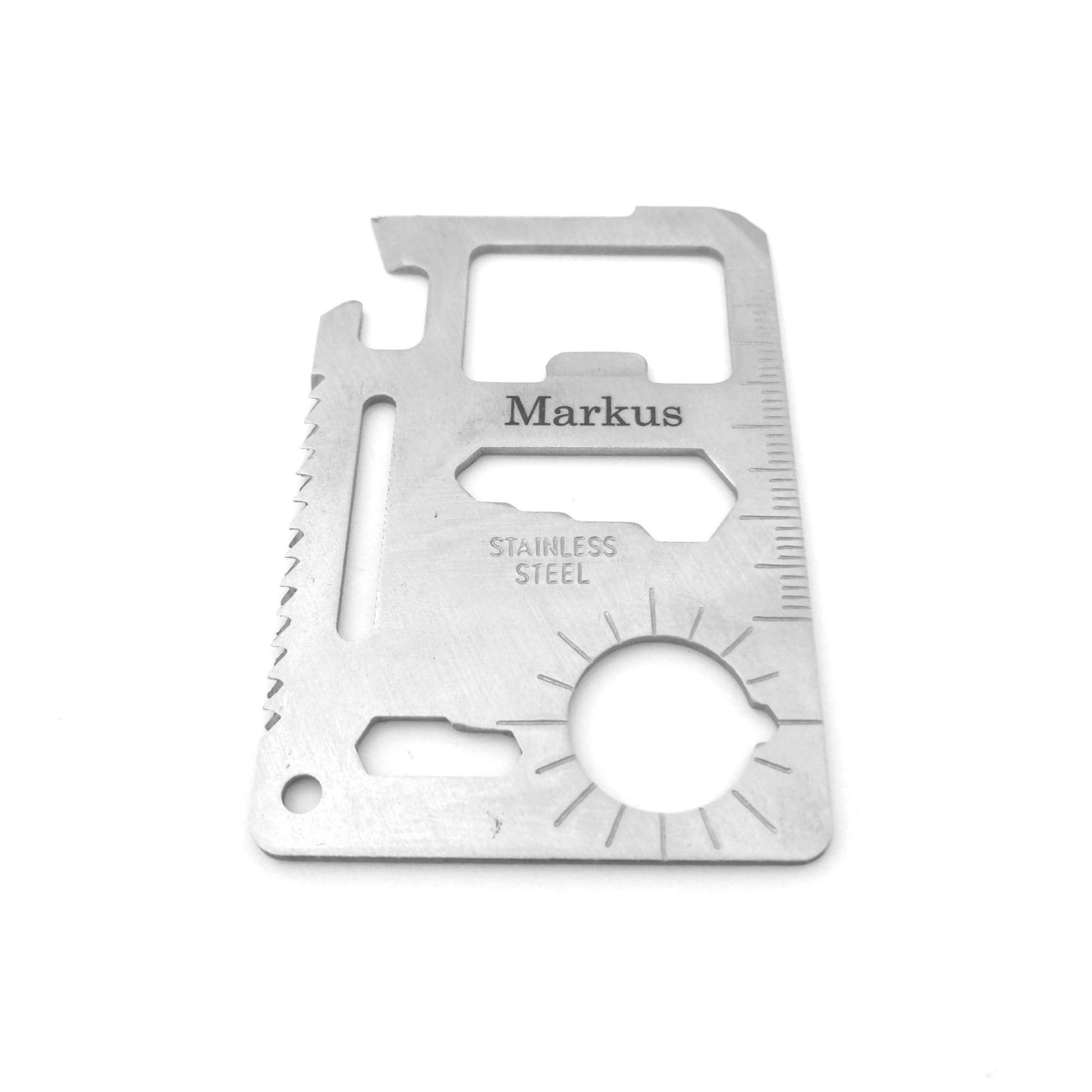 Selviytymistyökalu omalla nimellä on uniikki lahja sekä tietenkin myös kätevä käyttötyökalu. Työkalu sopii helposti ja huomaamattomasti taskuun. Se on helppo ottaa mukaan retkelle