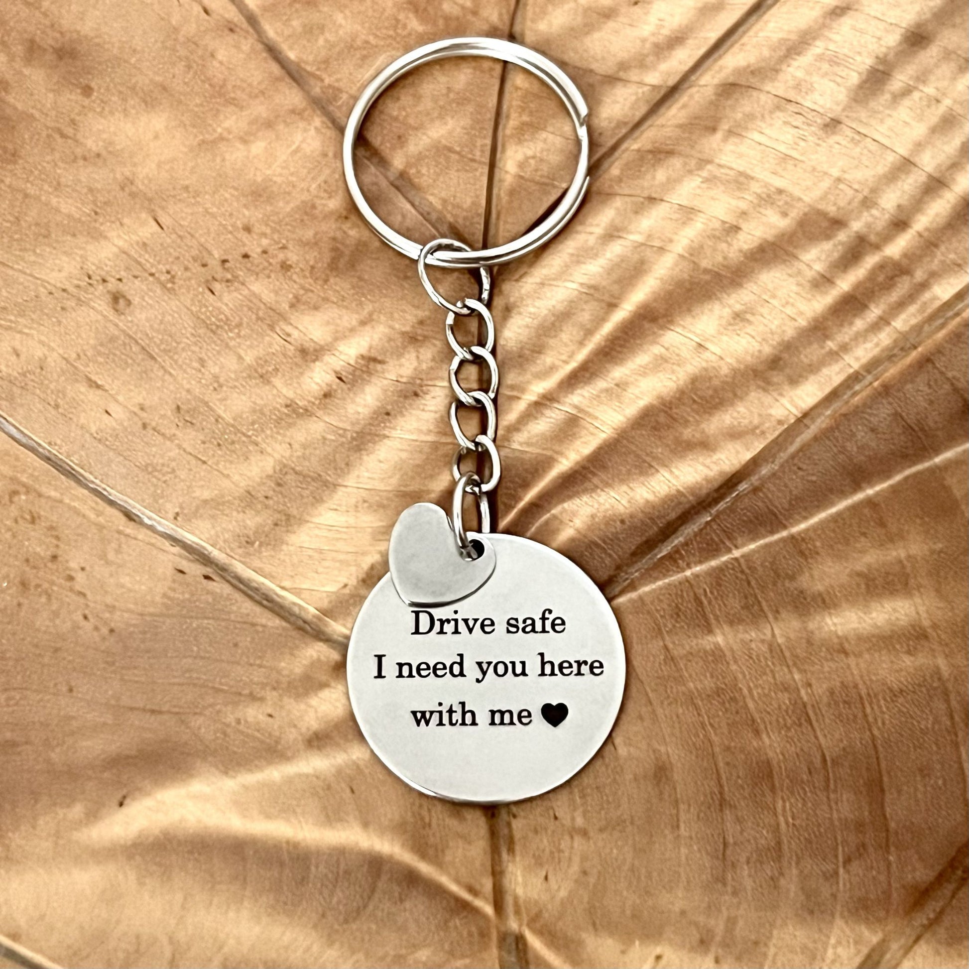Pyöreään avaimenperään saa oman tekstin pyöreään laattaan. Tämä avaimenperän erikoisuus on pieni sydän, joka roikkuu avaimenperässä. Se on kaunis yksityiskohta ja kevyt kantaa mukana.