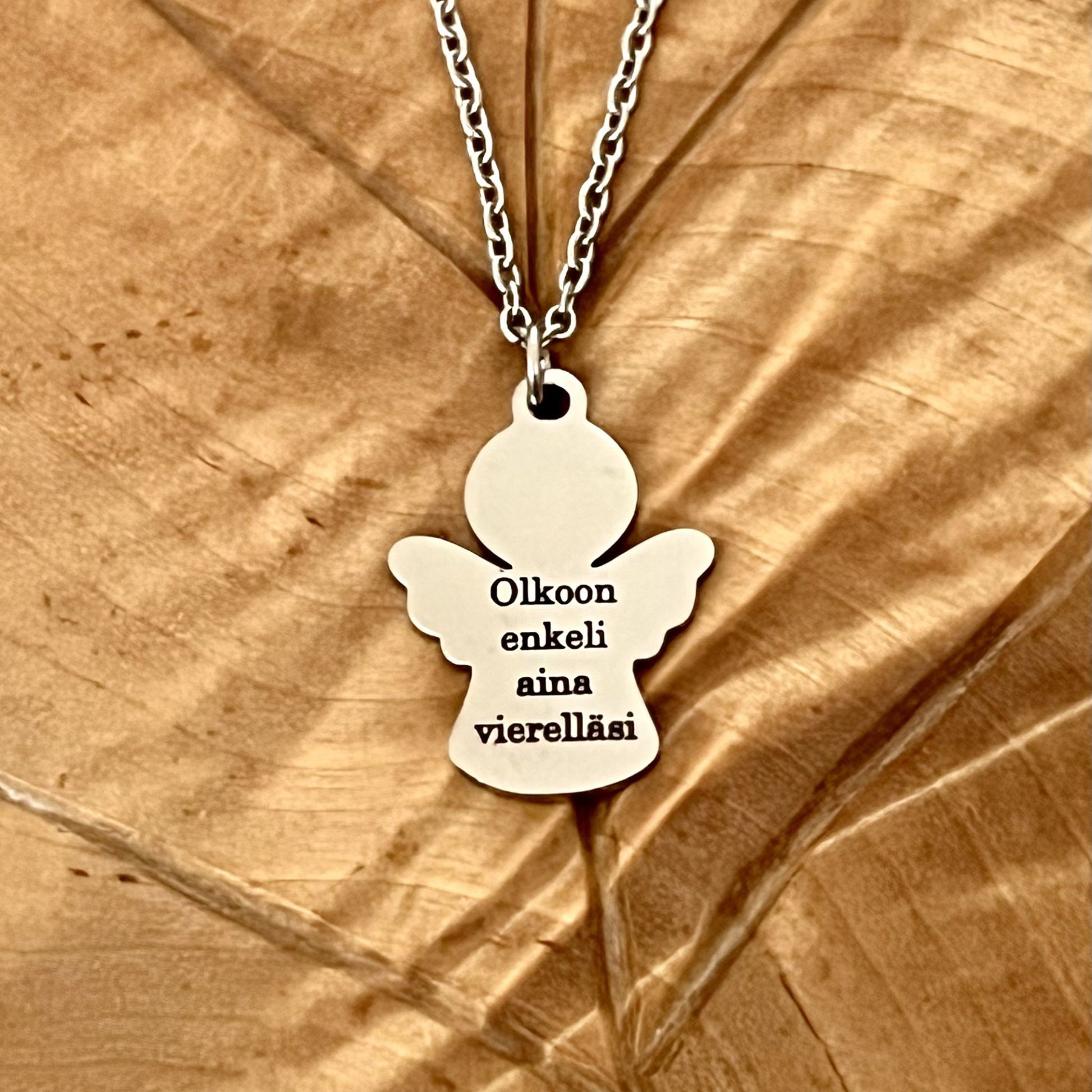 Suojelusenkeli nimikoru ja ketju ovat ruostumatonta terästä.