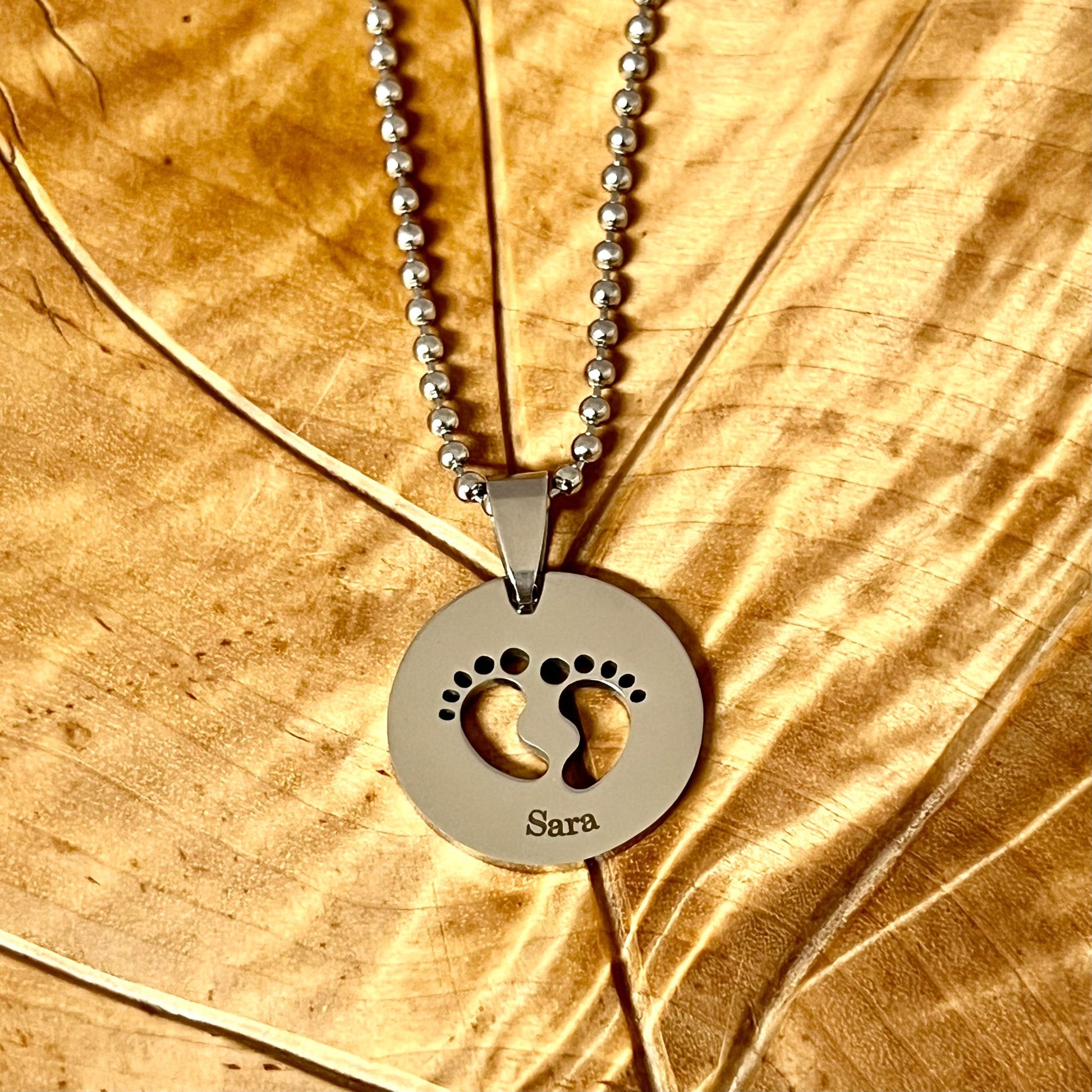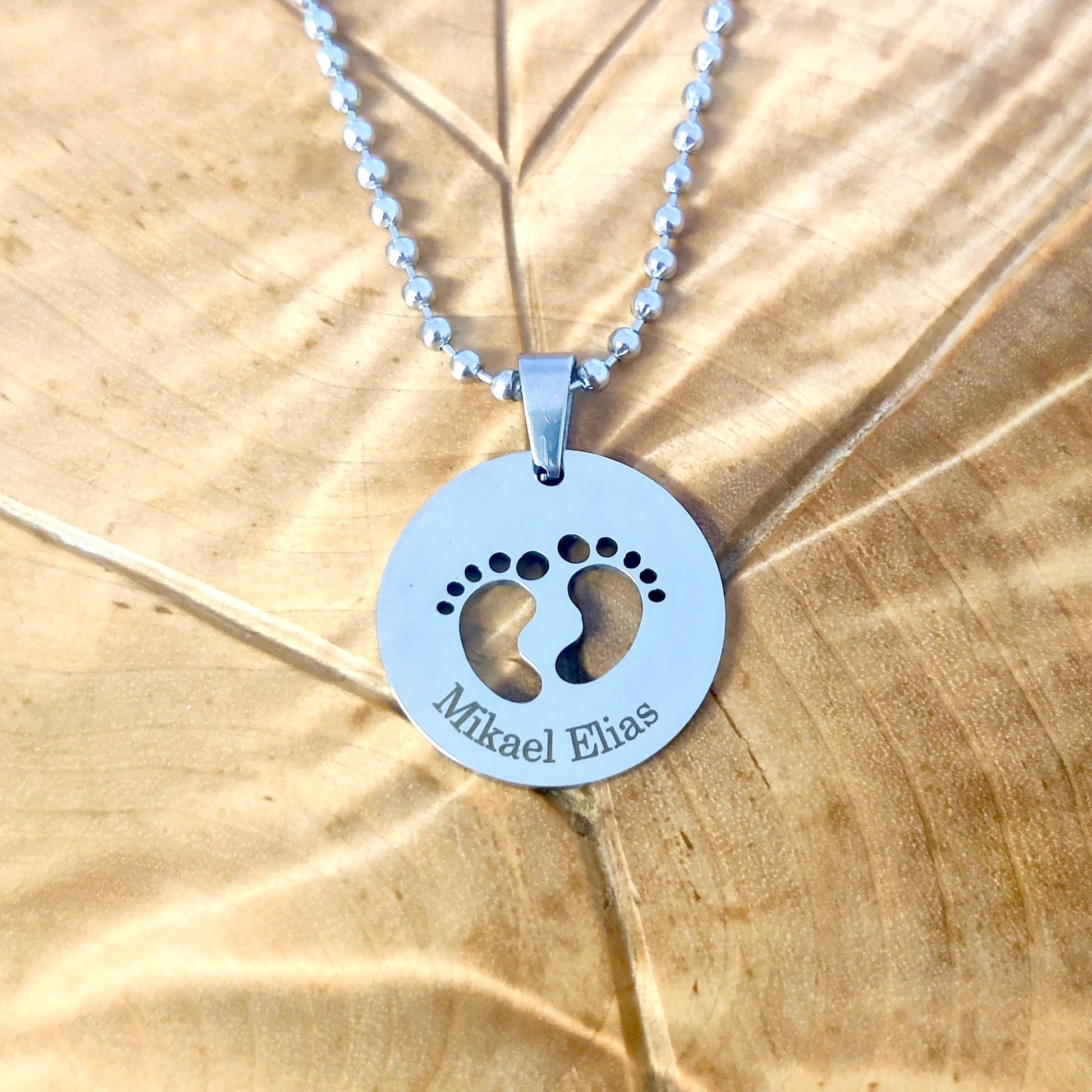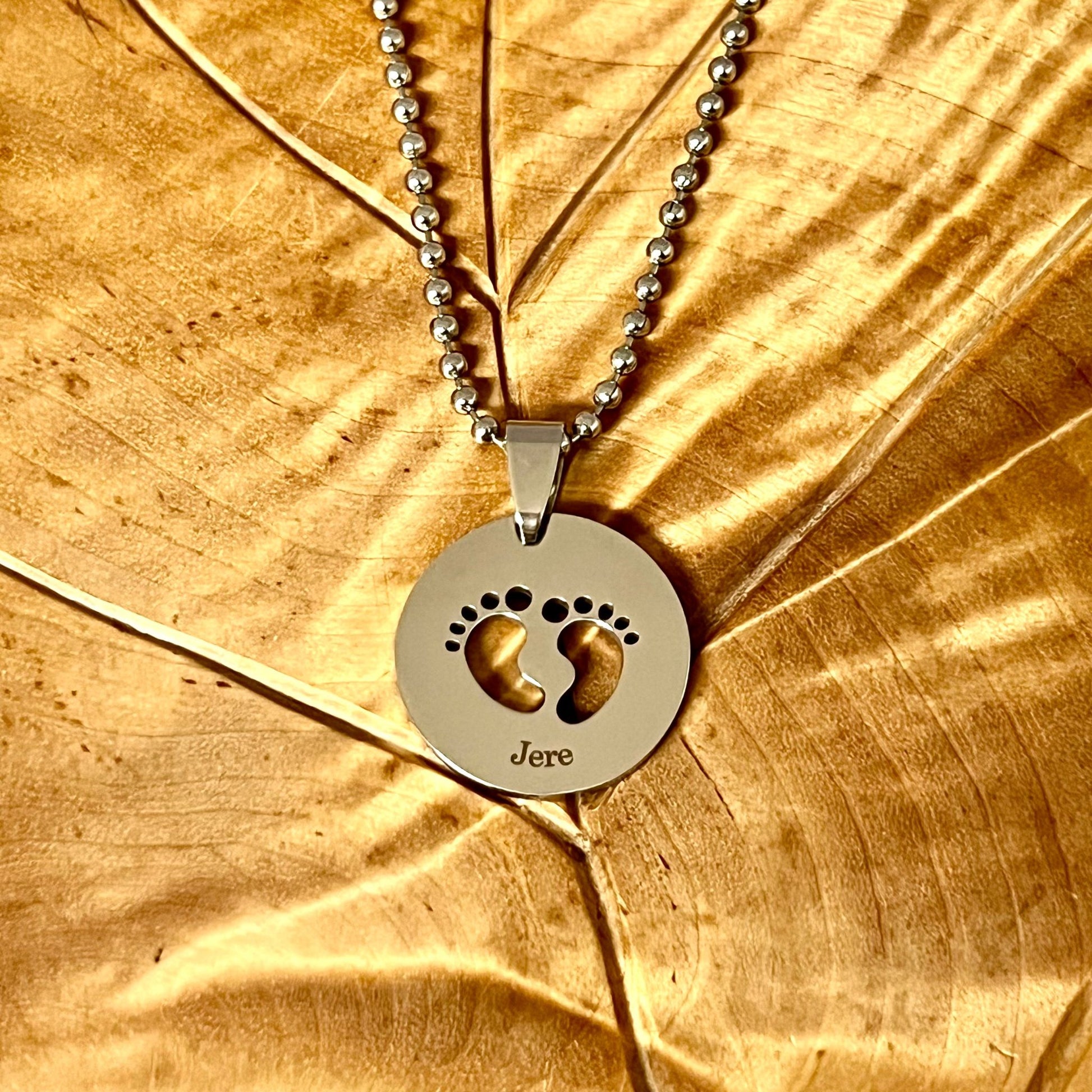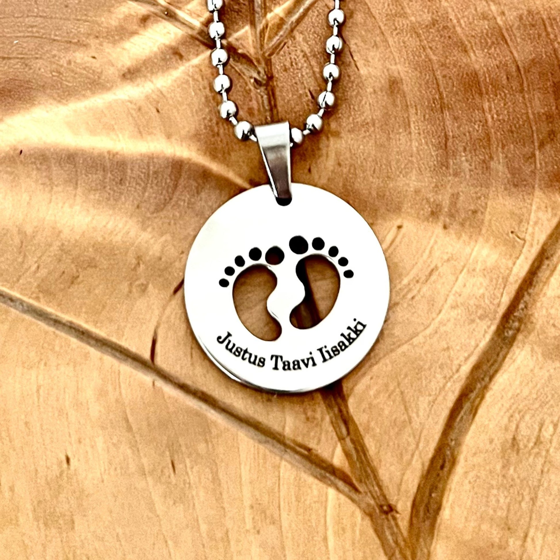 Pyöreä hopeanvärinen varvaskoru on erilainen lahja vaikka vastasyntyneelle nimiäispäivänä tai ristiäisiin. Vauvan matka alkaa pienistä askeleista ja nimi seuraa häntä matkan ajan.